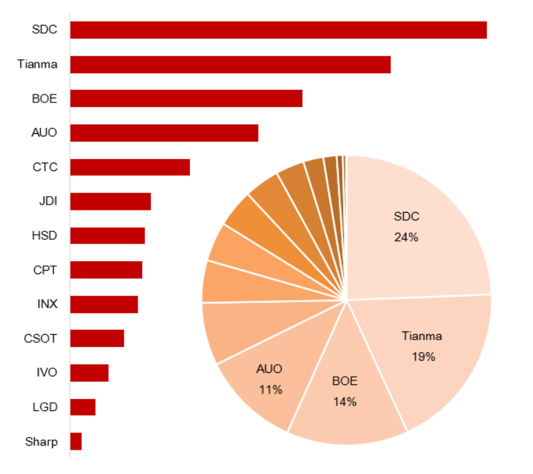 2018H1全球智能手機(jī)全面屏面板出貨排名及市占率